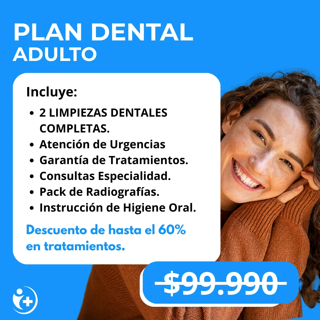 Con el Plan Dental Adulto accedes a controles, limpiezas y urgencias incluidas, evitando tratamientos costosos a futuro y pagando mucho menos por tu salud bucal.